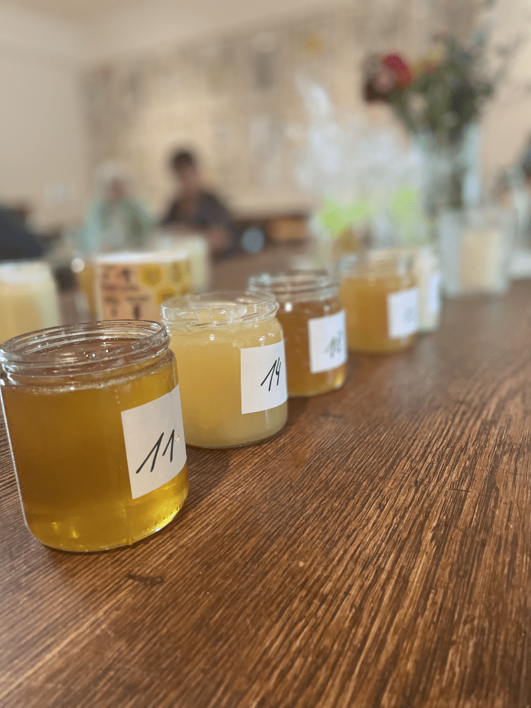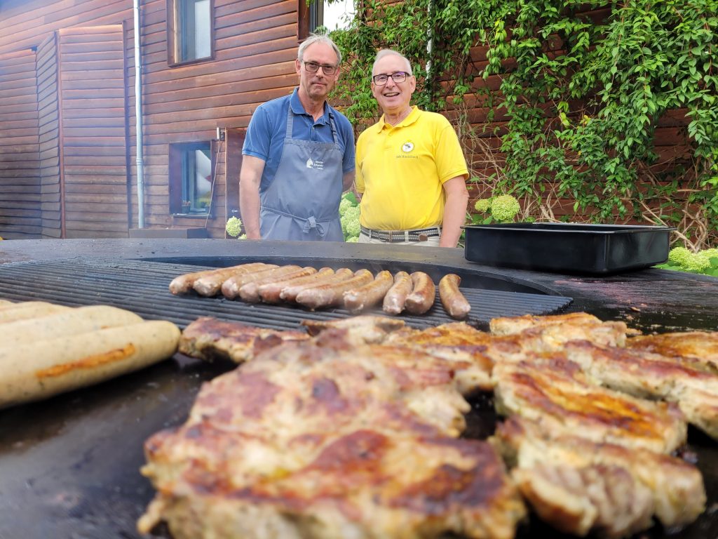 Parallel dazu lockte die Honigverkostung: Zehn verschiedene Sorten standen zur Auswahl, und es wurde ein echtes Kopf-an-Kopf-Rennen. Auch die kleinen Gäste kamen nicht zu kurz – für sie gab es zahlreiche Spielstationen mit Hüpfburg, Seifenblasen, Kubb, Dart etc. Viele leckere Kuchenspenden versüßten uns den Nachmittag, bevor abends der Grill angeheizt wurde und der Tag gemütlich ausklang.